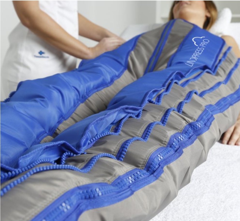 La presoterapia es un tratamiento estético y terapéutico no invasivo que utiliza un sistema de presión de aire controlada a través de botas, mangas o fajas especiales. Estas se colocan en diferentes partes del cuerpo (piernas, abdomen, brazos) y realizan un drenaje linfático mecánico.